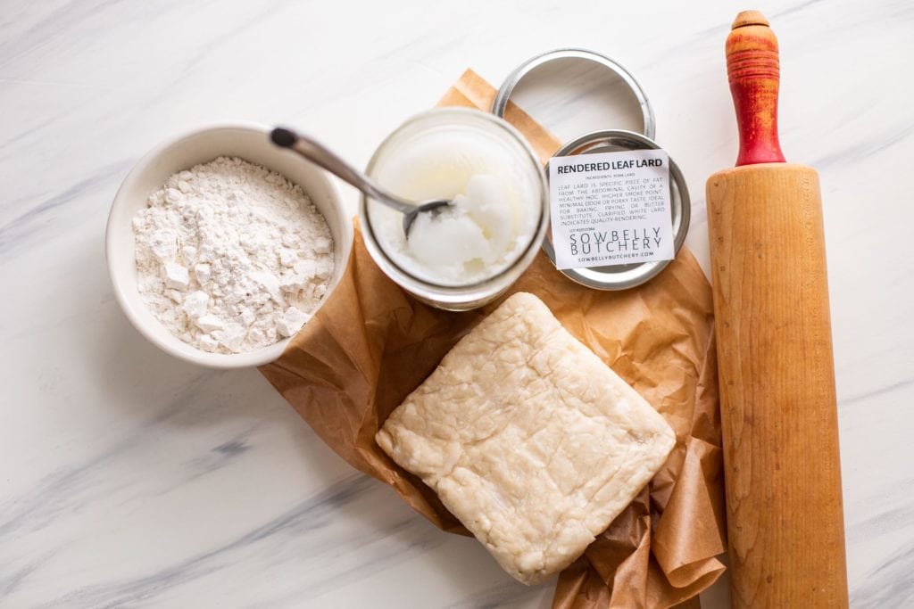 Lard is the general term for any rendered pork fat. Back fat, which lies just underneath the skin, is sold in chunks. It’s sometimes sliced thinly and laid on top of leaner roasts to add flavor. When rendered, it’s got a most definitely piggy taste. Belly fat, because it’s layered with meat, is used to make bacon, so its rendered fat is most often called grease. Caul fat is a lacy membrane that encases a pig’s intestines. As a product, it is typically wrapped around lean meats to add moisture and flavor. Leaf lard is fat taken from around the pig’s kidneys. Because of its molecular structure and mild taste, it’s best used to make pastry.